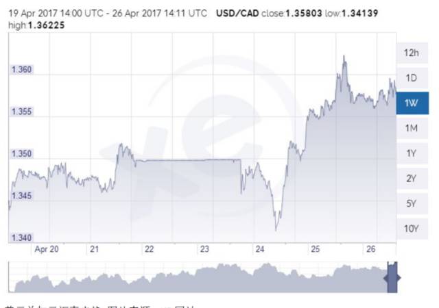 受上述消息影响,美元兑加拿大元汇率在本周一路走高,从上周收盘的1.350元一度冲高到1.362元,截至北京时间4月26日22时11分,暂报1.358元。金融时报认为,投资者担心加拿大产业在与美国的贸易战中受到冲击,而目前加拿大正考虑针对美国的反制措施。