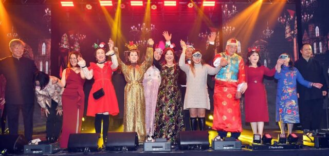 走秀结束后,在现场观众的热烈呼唤Encore中,万锦市长薛家平现场装扮起来,头戴礼帽,围上白色围巾,身披黑色大衣,以许文强look再度酷炫登场,粤语献唱一曲豪迈激昂的《上海滩》,市议员杨绮清助唱,来宾们再次纷纷登台伴舞,将晚会氛围推向热烈的新高潮!