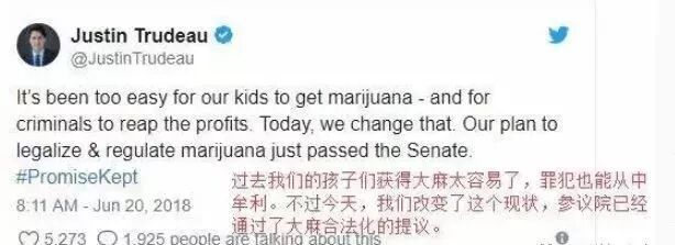杜鲁多第一时间庆祝大麻合法化