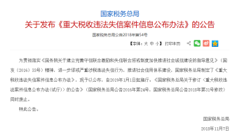近日,中国国家税务总局最新公布了《重大税收违法失信案件信息公布办法》